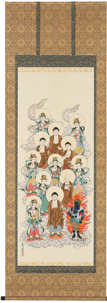掛け軸 掛軸阿弥陀十三佛(伊藤 香川) 尺八立
