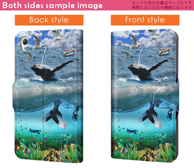 401SH simple-sumaho2 シンプルスマホ2 softbank ソフトバンク カバー 手帳型 カバー レザー ケース 手帳タイプ フリップ ダイアリー 二つ折り 革 海 鯨 写真 アニマル 004897