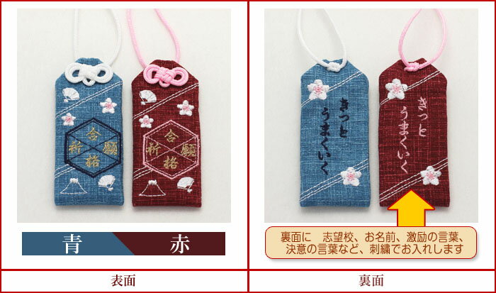 志望校、お名前、激励の言葉もオーダーメイドで刺繍するため、 世界に一つだけのお守り袋ができあがります。